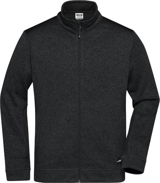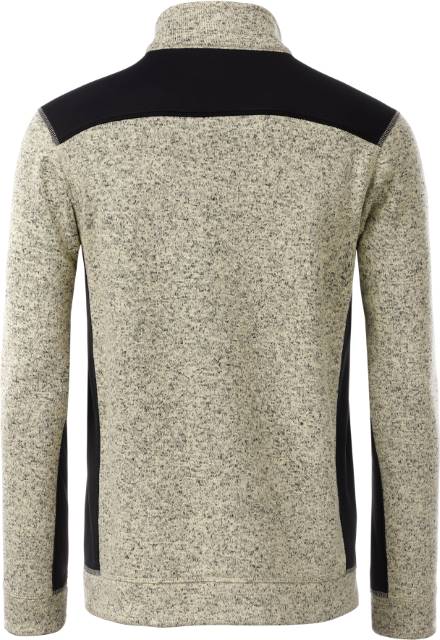 Stoječi ovratnik, elastični softshell vložki na straneh, ramenih in rokavih, podložena zadrga po celotni dolžini z zaščito za brado, 2 stranska žepa s skrito zadrgo, mehak, topel in enostaven material v videzu melange , zunanjost: pleten videz, notranja stran krtačena , pralno pri 30°, nežno pranje, ni primerno za sušenje v sušilnem stroju